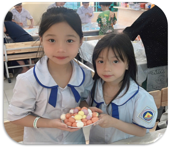 Chia sẻ niềm vui và cảm xúc, em Thiên An (lớp 4C) nói: Hôm nay em rất vui vì được tham gia làm bánh trôi, bánh chay. Ông bà em chắc sẽ rất cảm động khi nhận được đĩa bánh biếu em mời ông bà ạ.